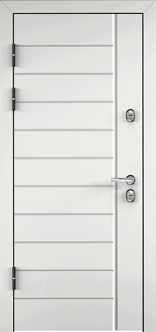 Эта белоснежная входная дверь с линиями №30 станет стильным и надежным элементом для любого интерьера. Благодаря отделке из панелей МДФ с ПВХ-покрытием, дверь выглядит элегантно и обладает высокой устойчивостью к внешним повреждениям. Внешний вид дверного полотна дополнен утонченными линиями, что придает ей современный, лаконичный вид. Прочный каркас из профильных труб 50х25 мм и лист металла толщиной 2 мм обеспечивают отличную защиту и долгий срок службы. Два контура резинового уплотнителя эффективно защищают от шума и холода, создавая комфорт в помещении. Замки Просам и Мосрентген с тремя ригелями гарантируют надежную безопасность. Дополнительно можно заказать зеркала, стеклопакеты и кованые элементы, что делает дверь универсальной для разных дизайнерских решений. Квартирная дверь входная белоснежного цвета с линиями №30 от производителя: быстрое изготовление и монтаж в Реутове, индивидуальные размеры, широкий выбор материалов и фурнитуры, официальная гарантия до 10 лет.
