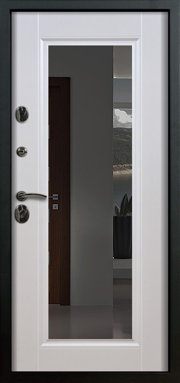 Металлическая входная дверь с зеркалом внутри №1 создана как универсальное решение для дома, квартиры или офиса, где важны и безопасность, и комфорт. Каркас выполнен из прочной профильной трубы с металлическим листом толщиной 2 мм и рёбрами жёсткости, что обеспечивает устойчивость к механическим воздействиям и долгий срок службы. Снаружи дверь покрыта порошковой окраской, стойкой к атмосферным влияниям и царапинам, а изнутри отделана МДФ с ПВХ-покрытием, которое сохраняет свежий вид даже при интенсивной эксплуатации. Встроенное зеркало превращает полотно в практичный элемент интерьера: оно визуально расширяет пространство прихожей и избавляет от лишних предметов мебели. Два контура уплотнителей защищают от пыли и сквозняков, а блокираторы усиливают общую надёжность конструкции. Модель не оснащена терморазрывом, зато отличается продуманным балансом практичности и доступной цены, оставаясь удобным вариантом для повседневного использования. Металлическая входная дверь с зеркалом внутри №1 от производителя: быстрое изготовление и монтаж в Реутове, индивидуальные размеры, широкий выбор материалов и фурнитуры, официальная гарантия до 10 лет.