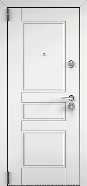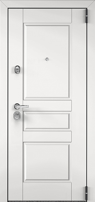 Белая металлическая дверь входная для дома №33 выделяется своим свежим и современным обликом. Универсальный белый цвет делает её уместной как в частном коттедже, так и в квартире или офисе, визуально добавляя простора и подчеркивая аккуратность фасада или интерьера. Конструкция двери основана на стальном листе толщиной 2 мм и усилена профильными трубами, что гарантирует надежность и устойчивость к нагрузкам. Важная особенность модели — наличие терморазрыва в полотне и коробке: благодаря этому дверь не промерзает в зимний период, исключается конденсат и сохраняется комфорт внутри помещения. Внешняя и внутренняя отделка выполнена из МДФ с ПВХ-покрытием, которое защищает поверхность от влаги и механических повреждений, сохраняя первозданный вид надолго. Два контура уплотнителя обеспечивают герметичность и дополнительную защиту от сквозняков. Эта дверь удачно сочетает эстетику и практичность, создавая надежный вход в любое жилище. Белая металлическая дверь входная для дома №33 от производителя: быстрое изготовление и монтаж в Реутове, индивидуальные размеры, широкий выбор материалов и фурнитуры, официальная гарантия до 10 лет.