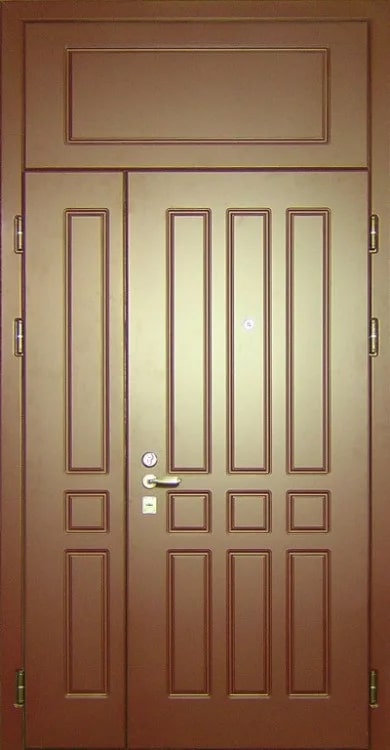 Полуторная входная дверь с верхней фрамугой №2 — это оптимальное решение для тех, кто ищет функциональность и эстетичность в одном продукте. Она отличается стильной отделкой из МДФ, которая устойчива к механическим повреждениям и сохраняет свой внешний вид на долгие годы. Конструкция двери включает прочный каркас из профильной трубы 50х25 мм и металл толщиной 2 мм, что обеспечивает высокую надежность. Наличие верхней фрамуги придает двери визуальную легкость и позволяет пропускать больше света, создавая уют в прихожей. Замки от надежных производителей, таких как Просам и Мосрентген, с тремя ригелями гарантируют высокий уровень безопасности. Для дополнительной кастомизации можно добавить стеклопакет, зеркало или кованые элементы, а также установить видеодомофон для контроля доступа. Полуторная входная дверь с верхней фрамугой №2 от производителя: быстрое изготовление и монтаж в Реутове, индивидуальные размеры, широкий выбор материалов и фурнитуры, официальная гарантия до 10 лет.