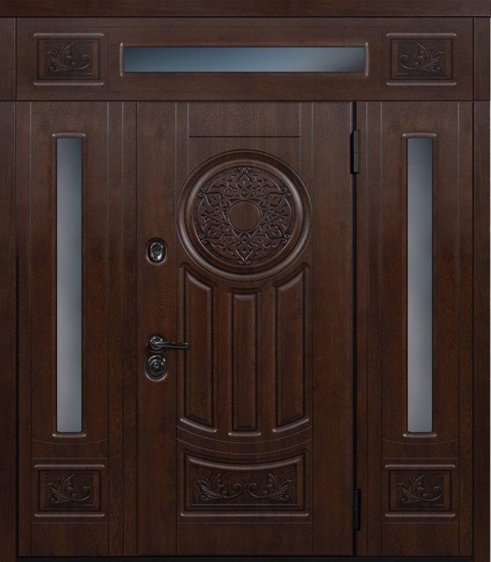 Эта нестандартная парадная дверь с фрамугой №6 — отличный выбор для тех, кто ценит элегантность и долговечность. Внешняя и внутренняя отделка из МДФ придает дверям стильный и современный вид, а также защиту от механических повреждений. МДФ устойчива к царапинам и вмятинам, что делает дверь идеальной для долгосрочной эксплуатации. Каркас из профильной трубы 50х25 мм и лист металла толщиной 2 мм обеспечивают прочность и надежность, а ребра жесткости из профильных труб гарантируют дополнительную устойчивость. В двери установлены блокираторы, два контура уплотнителей из резины, что повышает звуко- и теплоизоляцию. Замки от известных производителей, таких как Просам и Мосрентген, обеспечат надежную защиту. Возможность комбинировать отделку, добавлять зеркало, стеклопакет или кованые элементы позволяет легко адаптировать дверь под любые предпочтения. Нестандартная парадная дверь с фрамугой №6 от производителя: быстрое изготовление и монтаж в Реутове, индивидуальные размеры, широкий выбор материалов и фурнитуры, официальная гарантия до 10 лет.