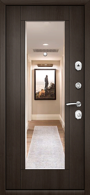 Входная дверь с зеркалом внутри №71 удачно сочетает практичность и надежность, оставаясь при этом стильным элементом интерьера. Она подходит для квартиры, офиса или частного дома, создавая удобство в быту и подчеркивая статус владельца. Внешняя сторона покрыта порошковой окраской, устойчивой к царапинам и перепадам температуры, что гарантирует долговечность и сохранение привлекательного вида. Внутри установлена накладка из МДФ, которая придает поверхности уют и делает её гармоничной частью интерьера. Зеркало на внутренней стороне экономит пространство прихожей и добавляет ей визуальной глубины. Каркас из профильной трубы с листом стали толщиной 2 мм и ребрами жесткости обеспечивает прочность и устойчивость ко взлому. Два контура уплотнителей создают дополнительную защиту от сквозняков и пыли, а терморазрыв в коробке и полотне предотвращает промерзание зимой. Для безопасности предусмотрены два замка российского производства с ригельными системами, при желании возможна замена на замки премиальных марок или установка умных электронных решений. Дверь входная с зеркалом внутри №71 от производителя: быстрое изготовление и монтаж в Реутове, индивидуальные размеры, широкий выбор материалов и фурнитуры, официальная гарантия до 10 лет.