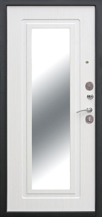 Надёжность металлической двери всегда в приоритете, но когда она получает дополнительное оснащение, результат становится особенно удобным. Входная дверь с зеркалом №78 удачно объединяет прочность конструкции и практичность деталей: массивный каркас из профильной трубы, лист стали толщиной 2 мм и усиленные рёбра жёсткости формируют крепкий защитный барьер, а зеркало на внутренней стороне делает её частью интерьера, экономя место и добавляя визуального простора. Снаружи используется молотковое напыление, устойчивое к царапинам и погодным перепадам, благодаря чему дверь подходит как для квартиры, так и для частного дома. Внутренняя отделка выполнена плитой МДФ, которая выглядит стильно и сохраняет аккуратность даже при активной эксплуатации. Два контура уплотнения помогают защитить помещение от сквозняков, а при необходимости конструкцию можно дополнить шумоизоляцией, современными замками и даже видеодомофоном. Входная дверь с зеркалом №78 от производителя: быстрое изготовление и монтаж в Реутове, индивидуальные размеры, широкий выбор материалов и фурнитуры, официальная гарантия до 10 лет.