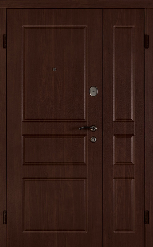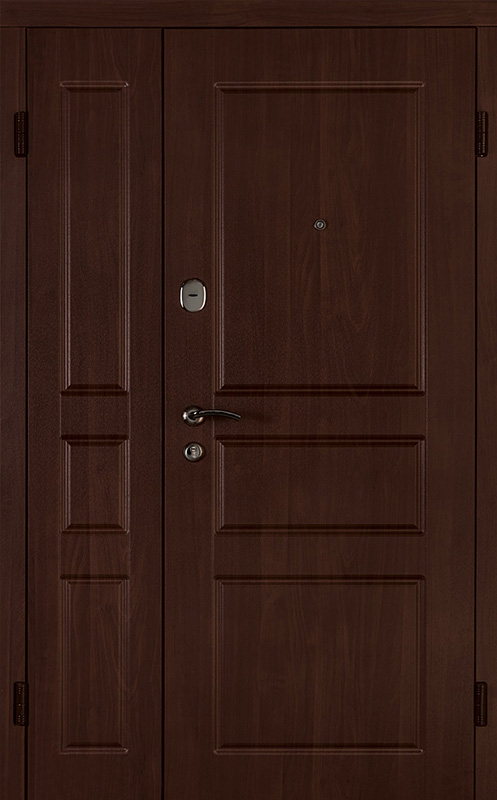 Коричневая входная полуторная дверь с филенчатой створкой №4 – это надежное и стильное решение для вашего дома или офиса. Внешняя и внутренняя отделка из МДФ с ПВХ обеспечивает долговечность и устойчивость к повреждениям, сохраняя при этом элегантный внешний вид. Прочные материалы конструкции, такие как профильная труба 50х25 мм и лист металла толщиной 2 мм, гарантируют стабильность и безопасность. Ребра жесткости из профильных труб 40х25 мм усиливают дверное полотно, а уплотнение с двумя контурами надежно защищает от внешних факторов. Несмотря на отсутствие терморазрыва, в двери реализованы терморазрывы в коробке и полотне, что помогает улучшить теплоизоляцию. Возможность выбора дополнительных опций, таких как шумоизоляция, делает эту дверь универсальной для различных условий эксплуатации. Коричневая входная полуторная дверь с филенчатой створкой №4 от производителя: быстрое изготовление и монтаж в Реутове, индивидуальные размеры, широкий выбор материалов и фурнитуры, официальная гарантия до 10 лет.